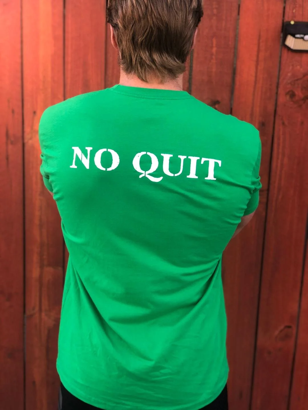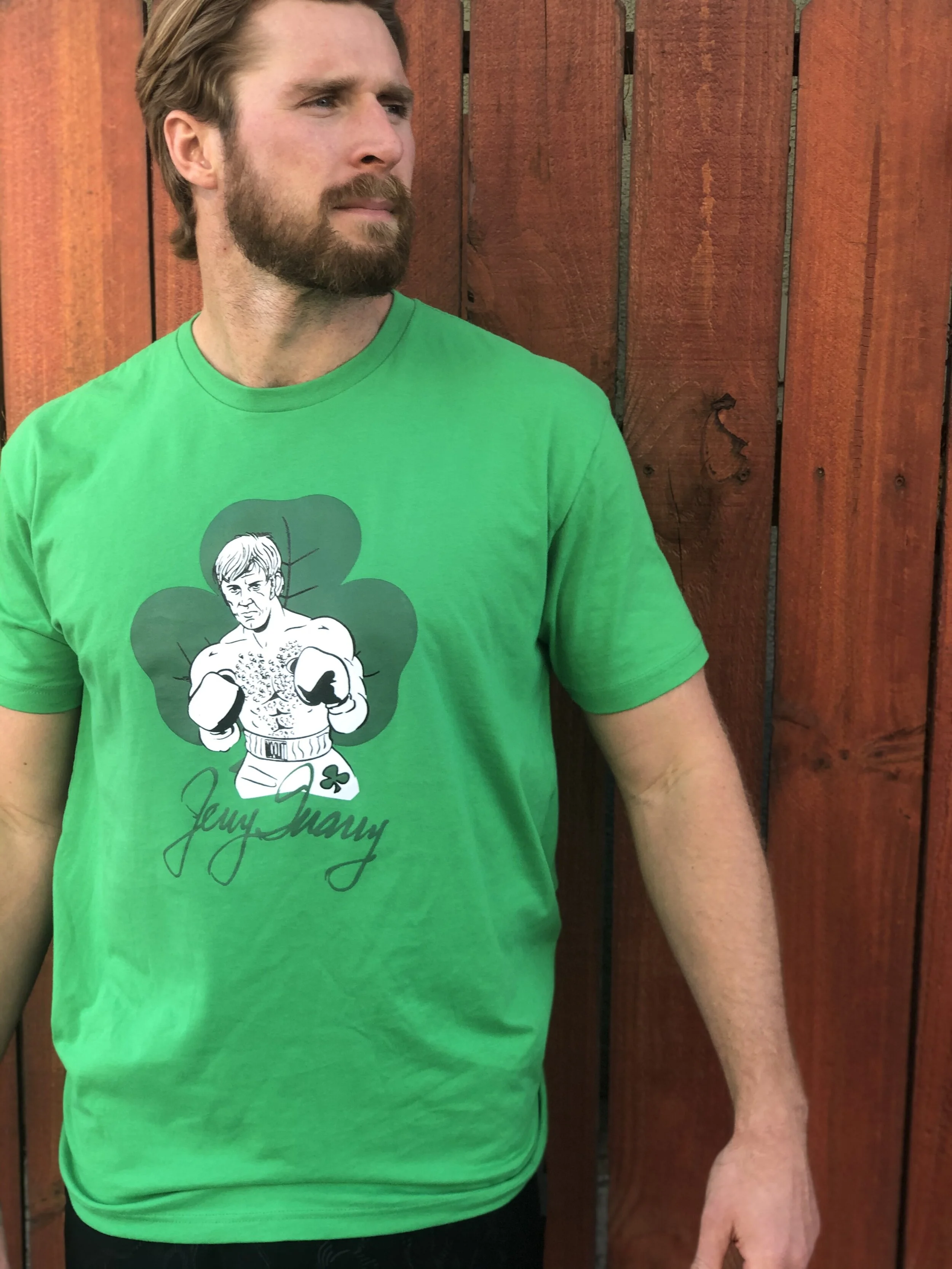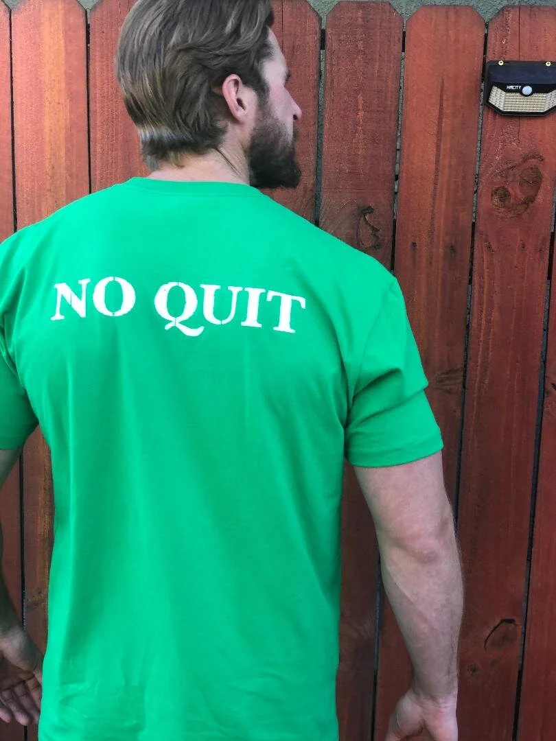 Store 1 › Jerry Quarry "No Quit" T-Shirt Green and White Image 1 of 7 Image 2 of 7 Image 3 of 7 Image 4 of 7 Image 5 of 7 Image 6 of 7 Image 7 of 7 Jerry Quarry "No Quit" T-Shirt Green and White $69.00 Add To Cart Added!